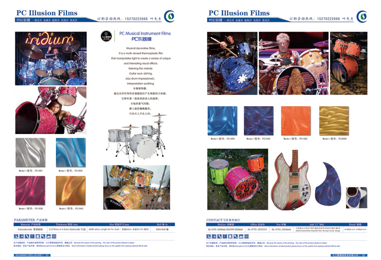 PC幻彩膜在樂器、建材、燈飾等行業應用