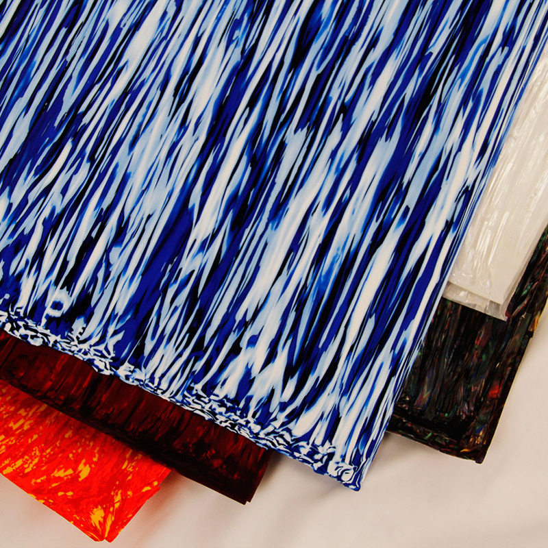 3、它質(zhì)地柔韌,不易折斷,并具有色澤鮮艷、花色繁多、閃光性好、有彈性、耐水、耐油、耐酸、強(qiáng)度高、容易加工成形等。